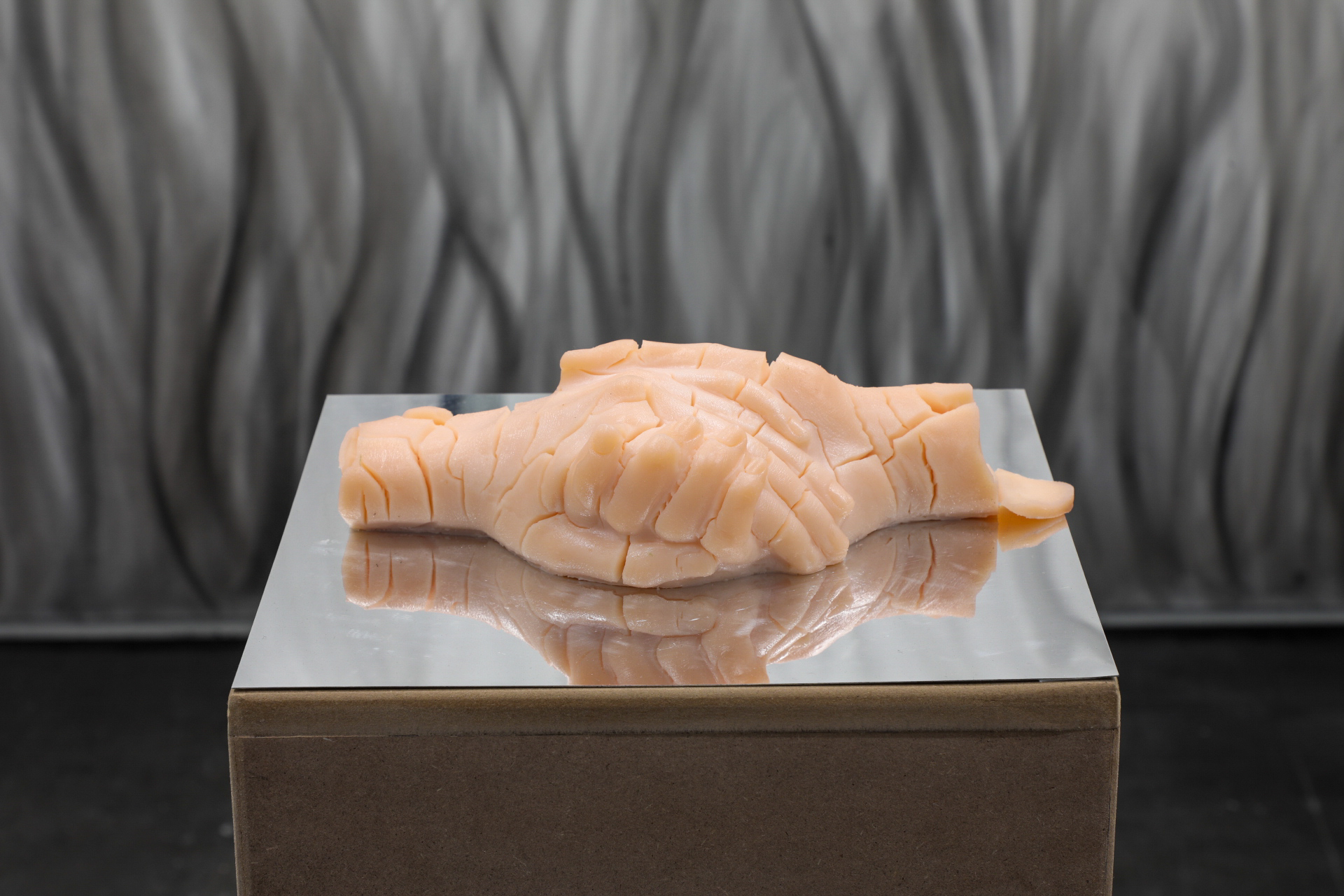 La scultura in materiale deperibile è una stretta di mano personale, di intima autodeterminazione, dal titolo My self with my self. Ecco quindi che l’organico è l’anticipo della decomposizione e il fumo porta con sé quel che resta di corpi per secoli bruciati e messi al rogo, di cui null’altro rimane. Lo stesso fumo viene fissato su carta, dando vita a narrazioni simboliche che attingono da scenari pagani ed esoterici. I disegni diventano veicolo di attacco al potere e alla morale. Messaggi di sintesi distopica, di un futuro nebuloso e di un passato ancora da riscrivere. Il progetto si configura quindi come anticipo e descrizione del destino dei corpi e della materia. Il destino, forse, di una generazione, che fa dell’effimero e del temporaneo il suo modus vivendi.