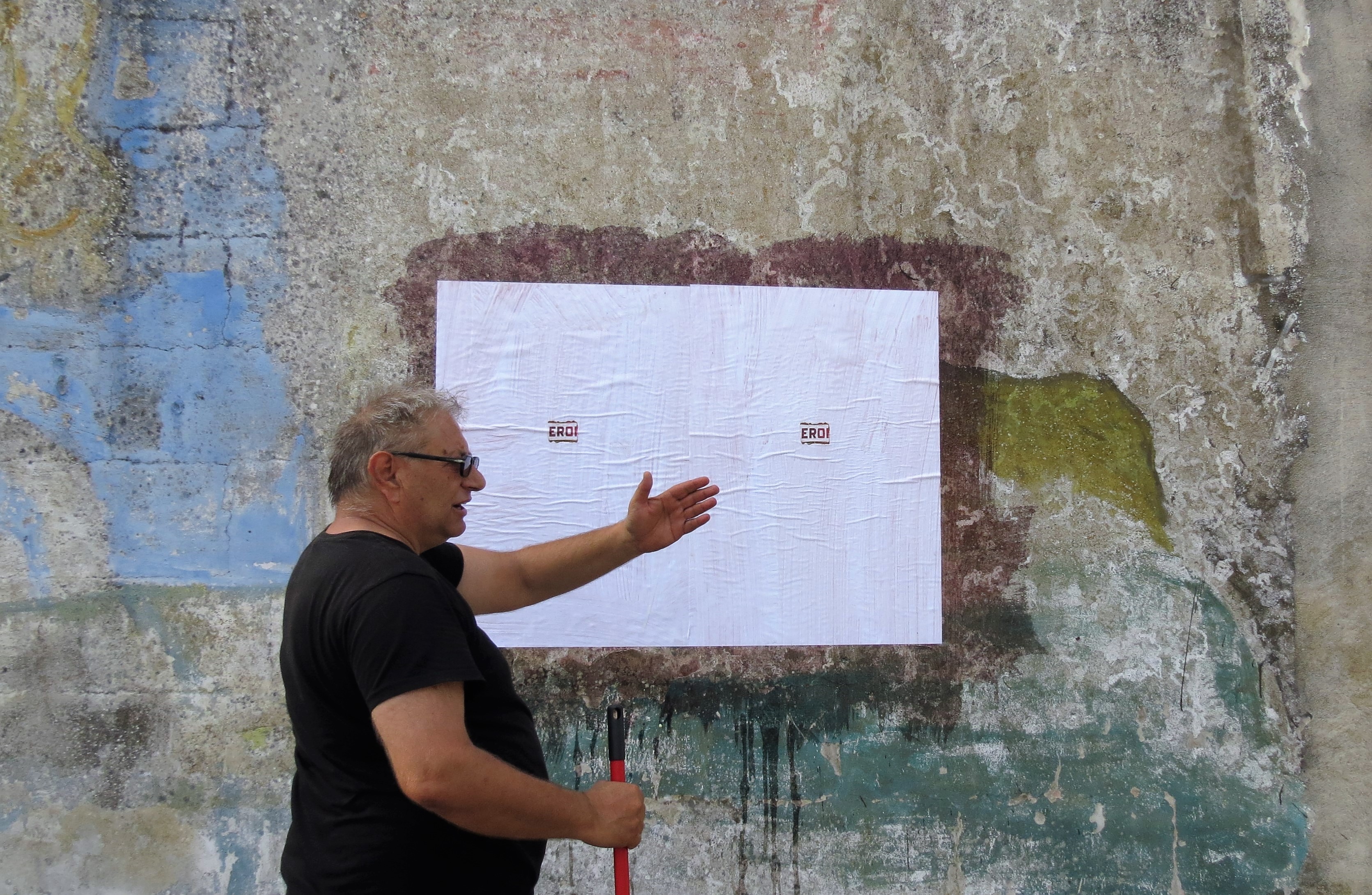 La lettura collettiva è seguita dall’intervento No more blue tomorrows (spit) , 2023, di Davide Sgambaro con la performer Lavina Miglietta. Concepito come uno sciopero silenzioso e passivo, l’intervento invita a una riflessione sul rifiuto delle attuali e future generazioni a partecipare attivamente alla vita sociopolitica, producendo contro-intuitivamente una forma di risposta condivisa con il pubblico. Negli spazi di giardino project è inoltre allestita la serie di collage dal titolo Eroi #1, 2023. Lo strappo dell’etichetta PERONI diviene per Sgambaro un gesto apatico e morboso. La parola che l’artista compone espungendo alcune lettere suggerisce una forma di disillusione sul futuro e dischiude la drammaticità di un’azione all’apparenza innocua e arbitraria. Ne risulta un manifesto in cui “eroine” ed “eroi” sono in realtà coloro che giornalmente sopravvivono a conflitti di classe e identitari.